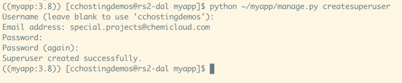 - Next, we’ll set up the superuser account. This is useful if you need to create an initial superuser account or if you need to generate superuser accounts for your site(s) programmatically.)